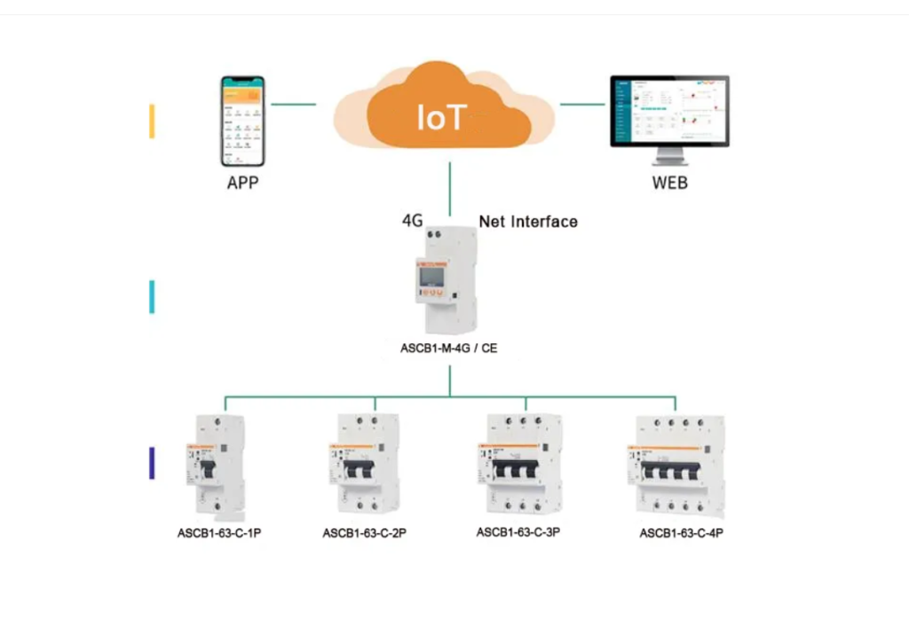 ASCB1 series consists of two parts: smart miniature circuit breaker and smart gateway, which can be used to control the key electrical factors of power lines, such as voltage and current, power, temperature, leakage, energy consumption, etc. for real-time monitoring with functions of remote control, early warning protection, short circuit protection, energy metering statistics, fault location and others. It can be applied to indoor buildings and similar places of industrial, commercial, civil buildings and low-voltage terminal power distribution network in infrastructure and other fields.